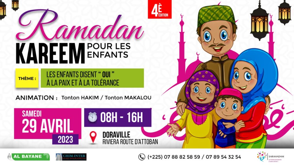 Ramadan Kareem est un évènement organisé chaque année par SARAHADAM et entièrement dédié aux enfants Musulmans dans un espace saint, ludique et récréatif pour leur réjouissance après l’Aïd-El-Fitr (fête de fin du mois de Ramadan).